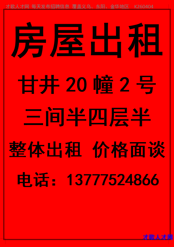 东阳甘井20幢2号 三间半四层半 整体出租