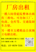 厂房招租地址:义乌佛堂义南工业区葛仙支路2号1楼1700平方可做印刷2-6楼单层1450平方整