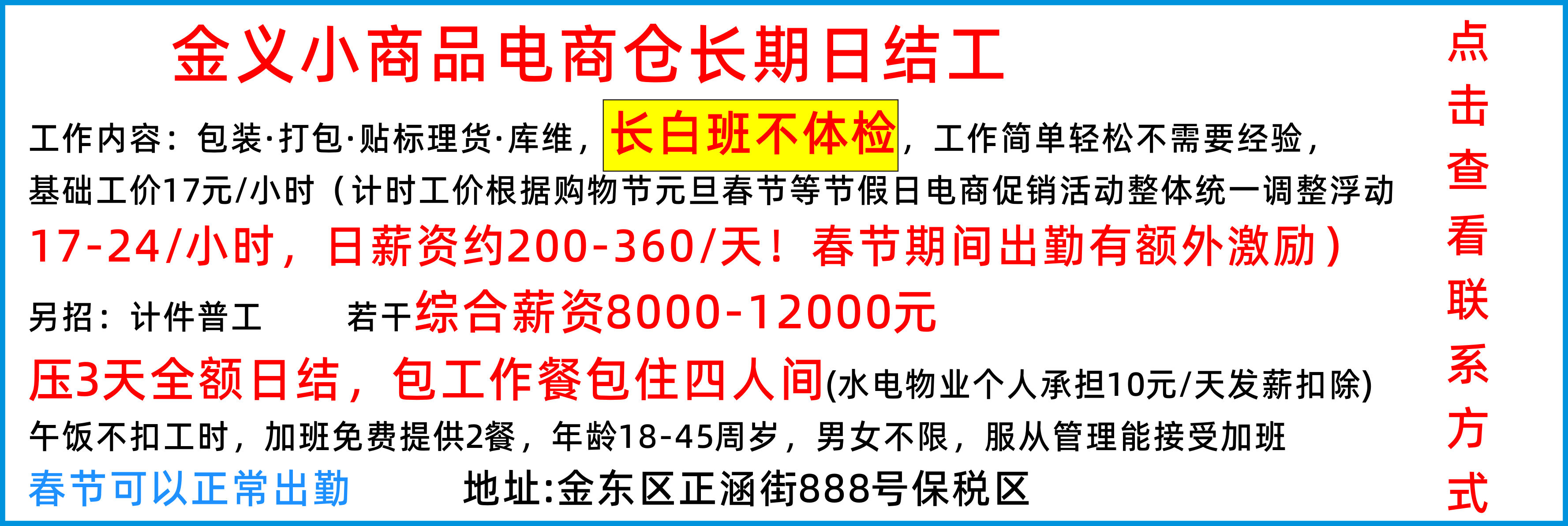 青口男杂工 激光打标 挂圈贴条码女工 春节期间三倍工资