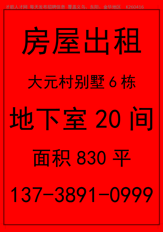 义乌江东街道 大元村别墅6栋 地下室20间 830平出租