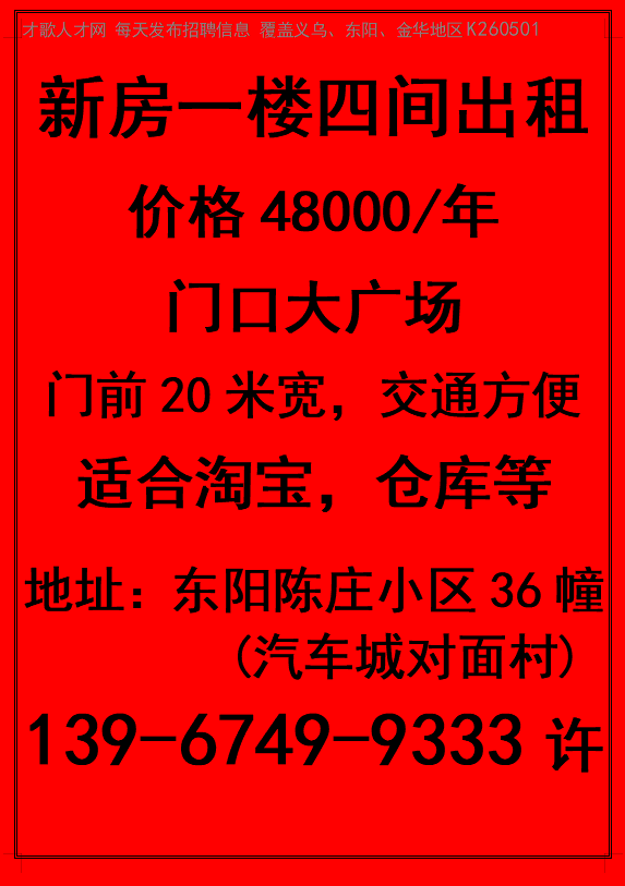 东阳陈庄小区36幢新房一楼四间出租 交通方便 适合淘宝,仓库 - 仓库 - 才歌网